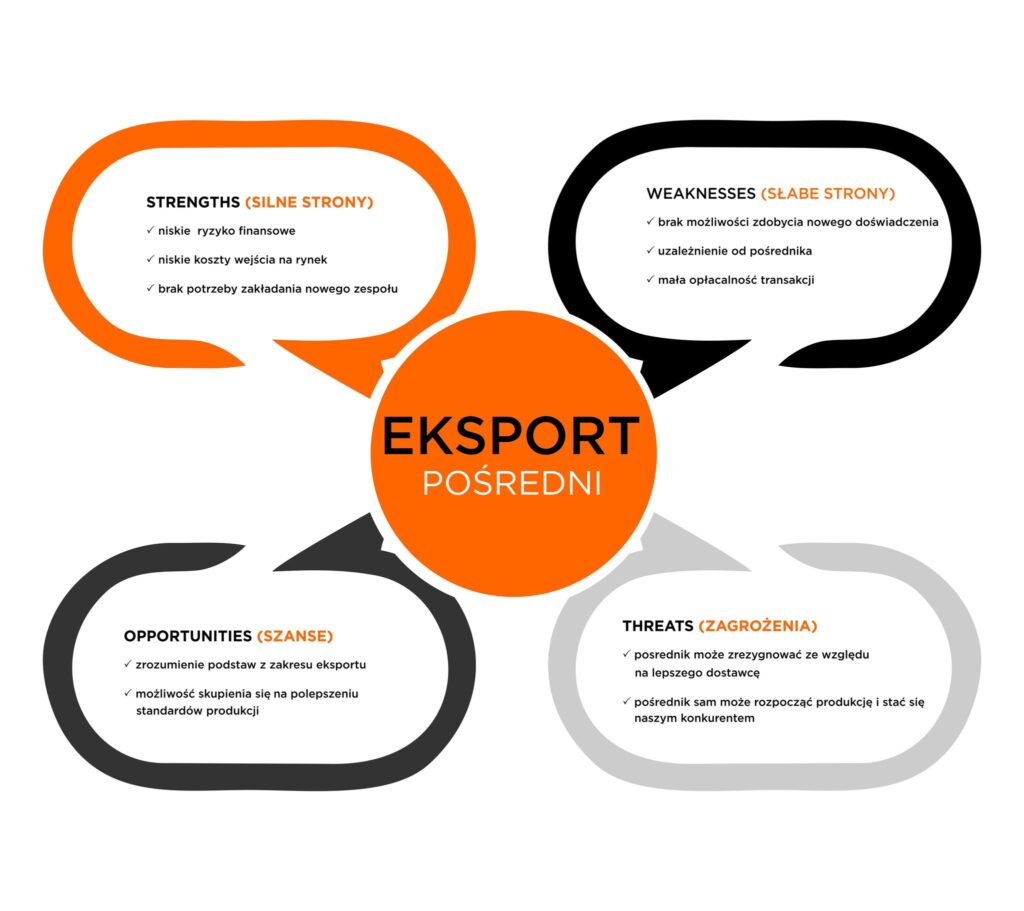 Це популярний спосіб для початку діяльності на закордонних ринках, що дозволяє компанії скористатися існуючою інфраструктурою та знанням посередника в галузі експорту.